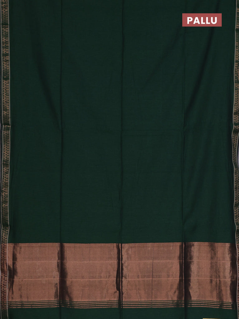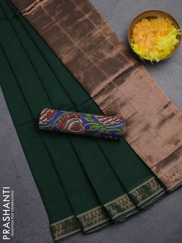 Bengal soft cotton saree bottle green and blue with plain body and zari woven border