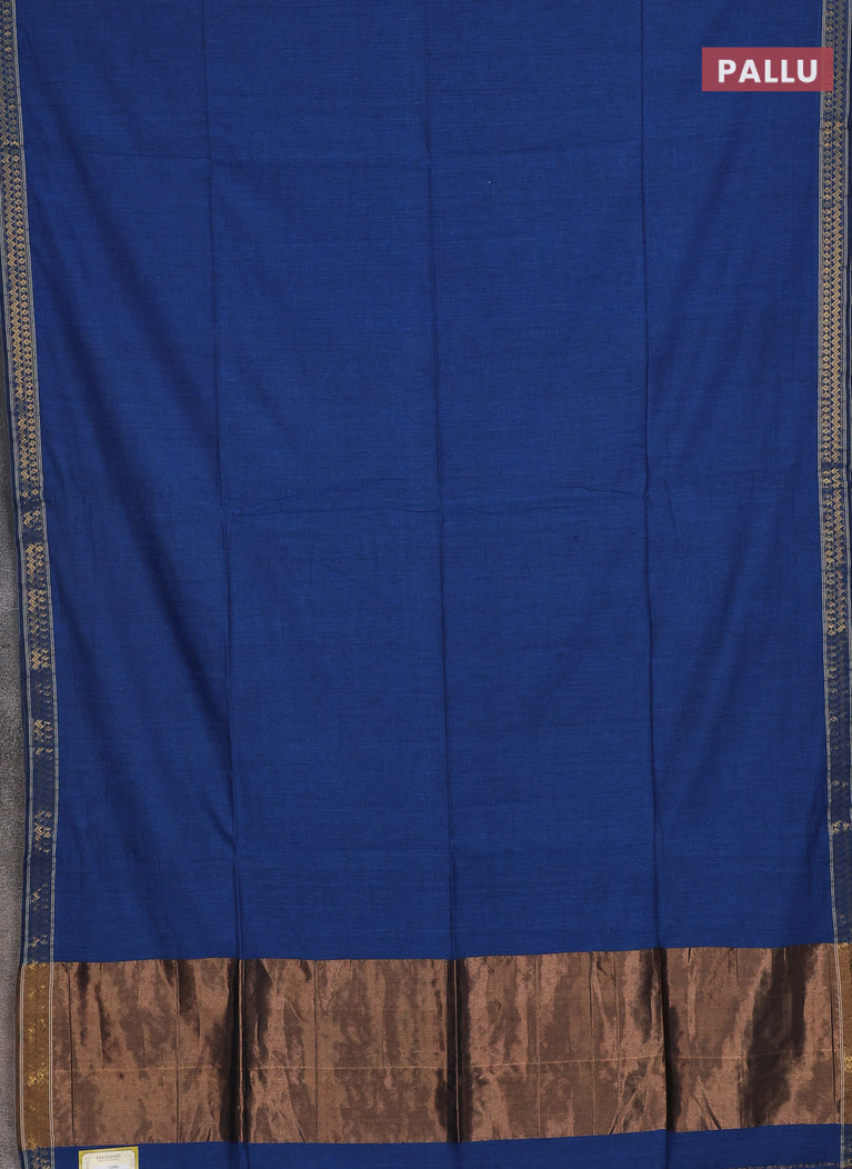 Bengal soft cotton saree cs blue and blue with plain body and zari woven border