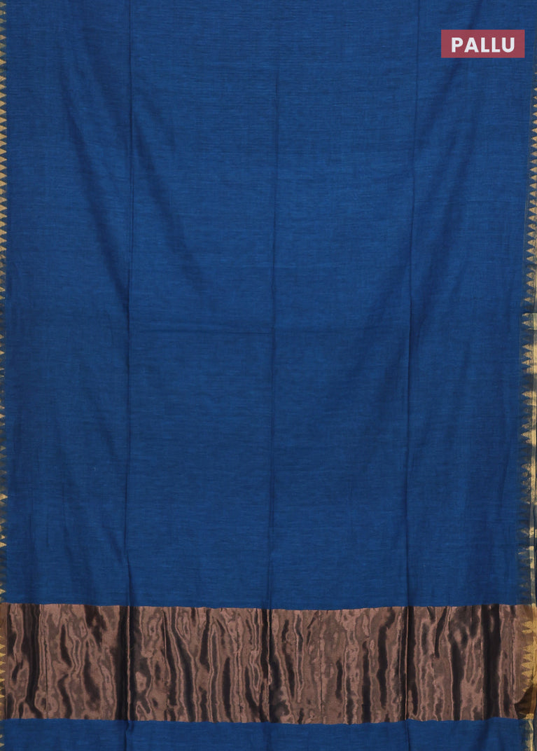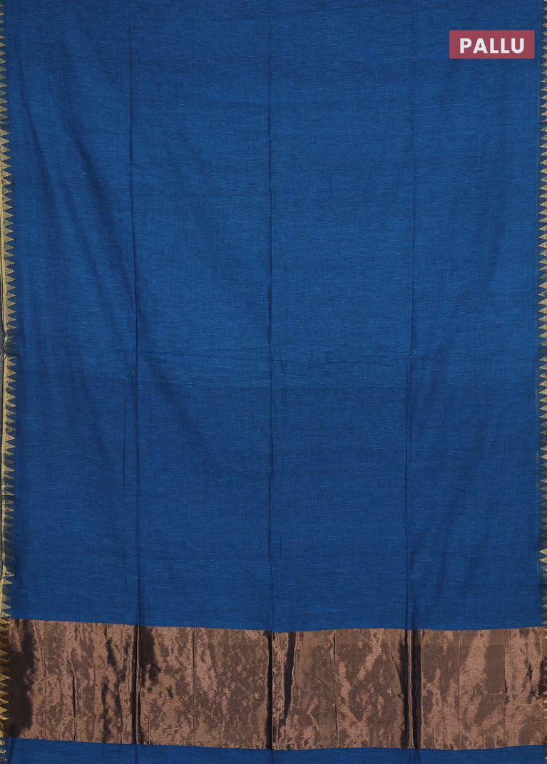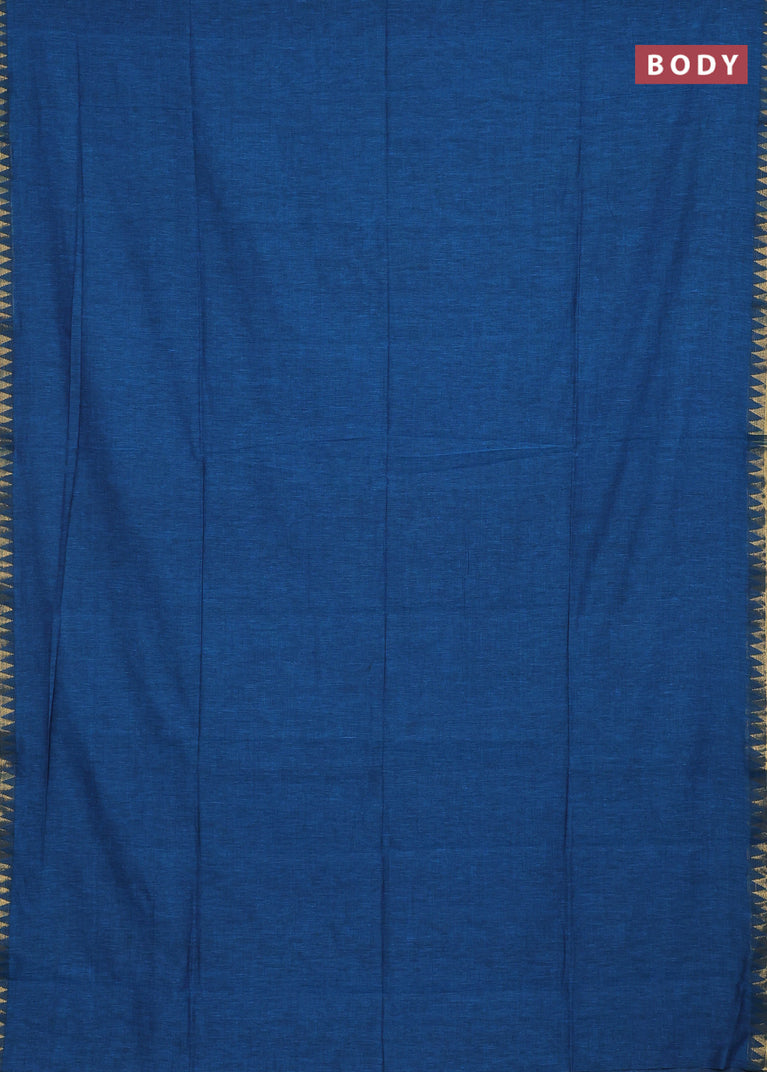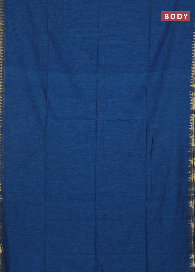 Bengal soft cotton saree cs blue with plain body and temple design zari woven border