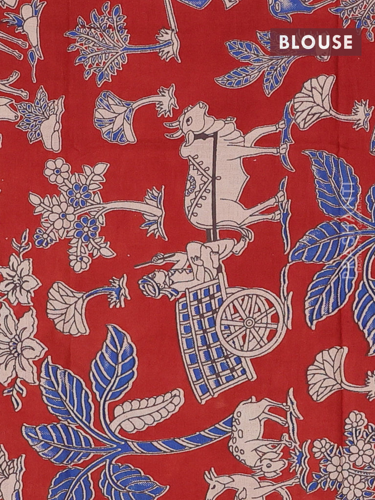 Bengal soft cotton saree blue and red with plain body and zari woven border