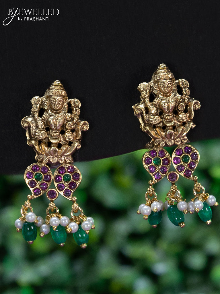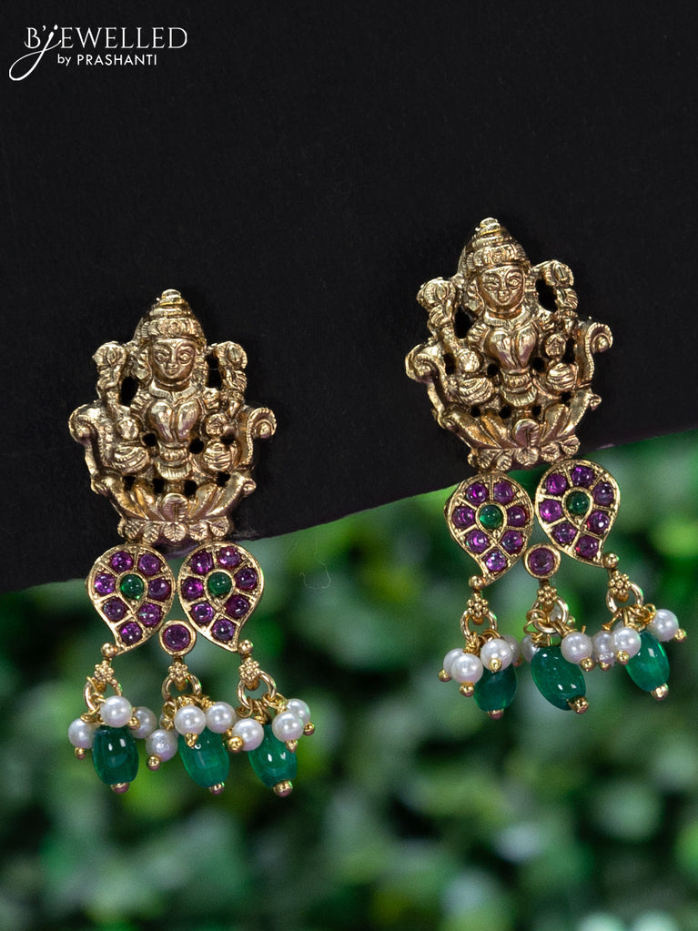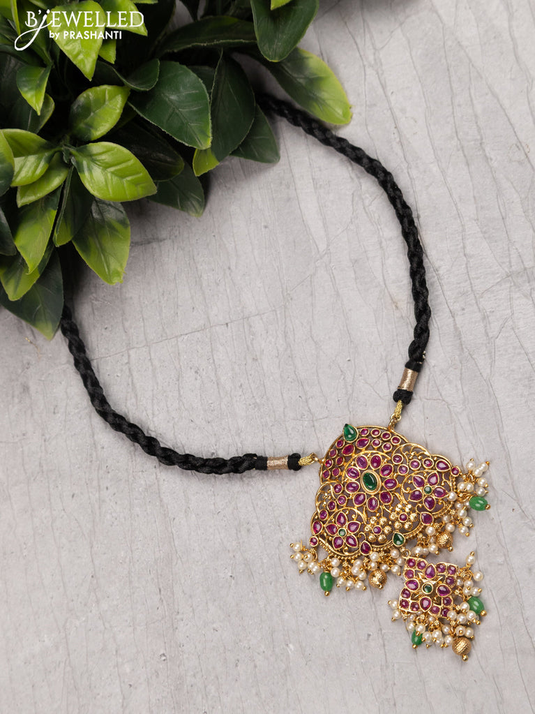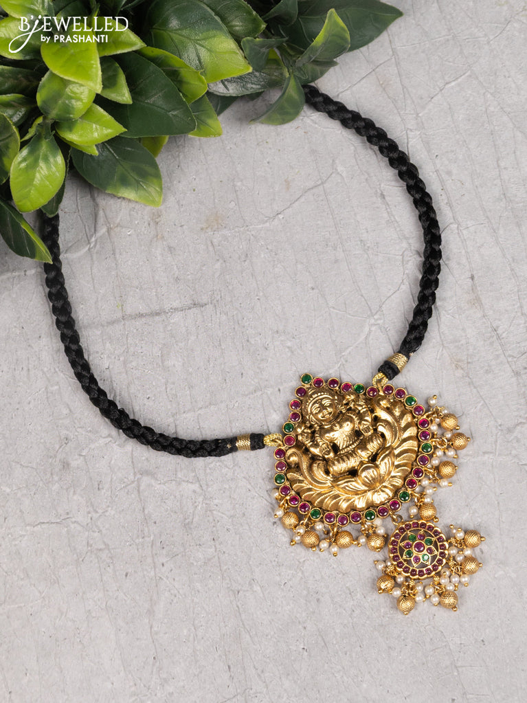 Black thread necklace lakshmi design with kemp stones and pearl & beads hanging