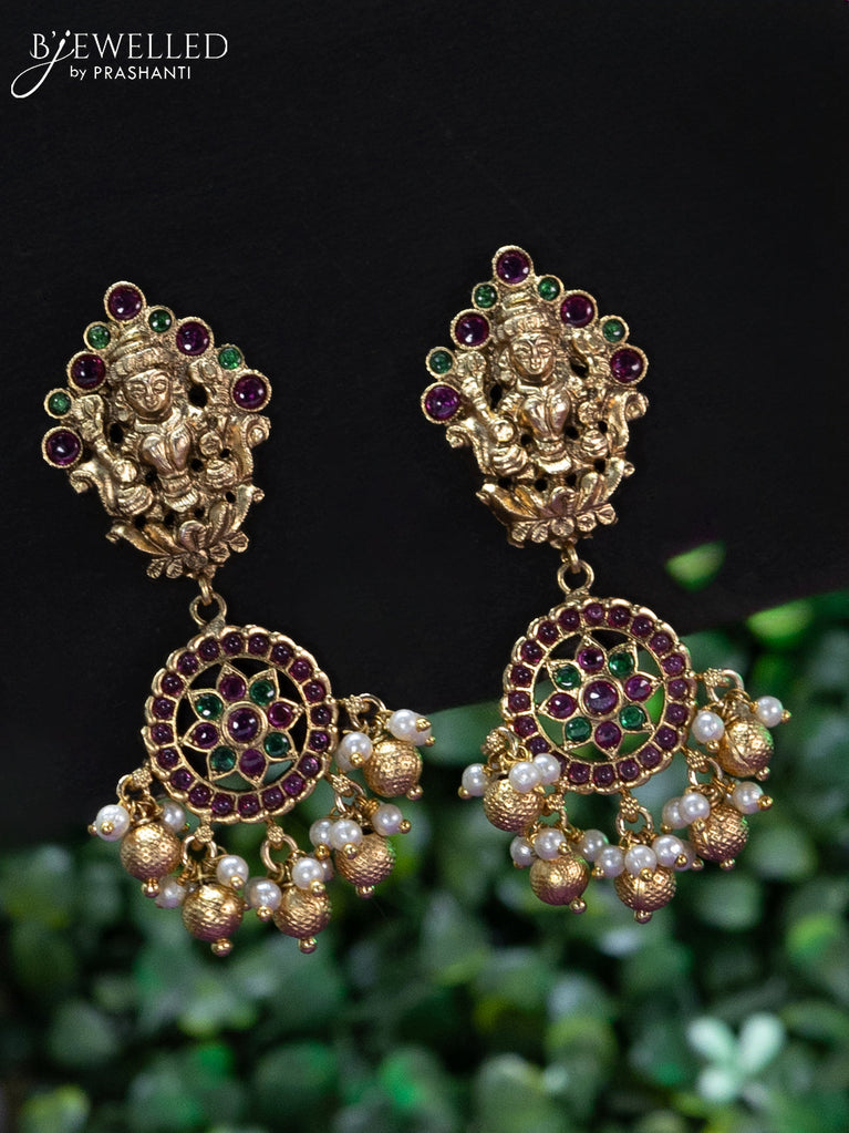 Black thread necklace lakshmi design with kemp stones and pearl & golden beads hanging