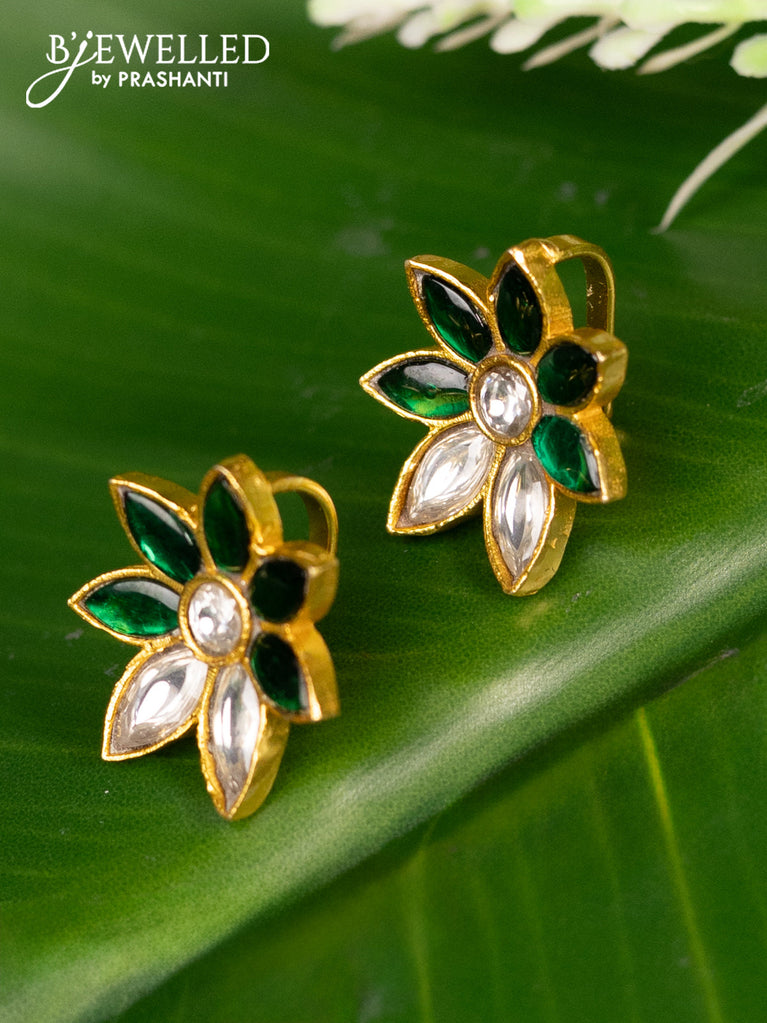 Bugadi earrings with green jadau kundan stones and pearl & beads hanging