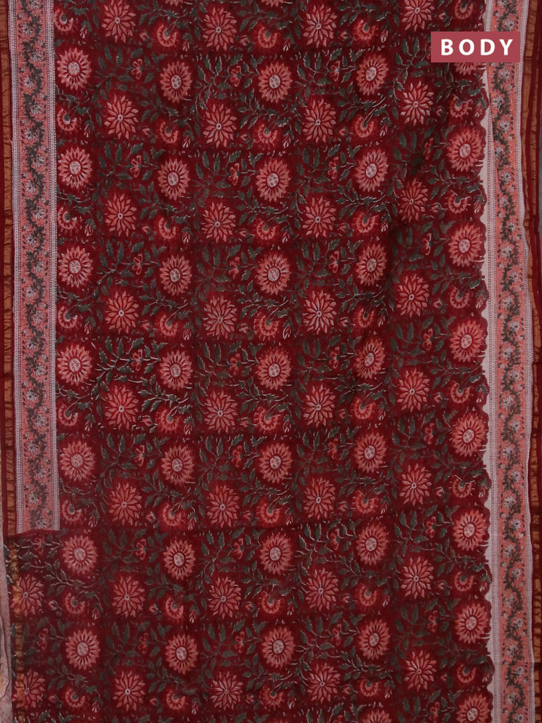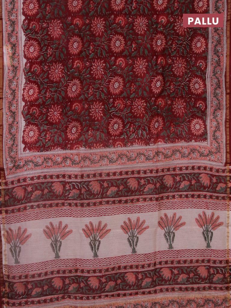 Chanderi bagru saree maroon with butta prints and small zari woven border