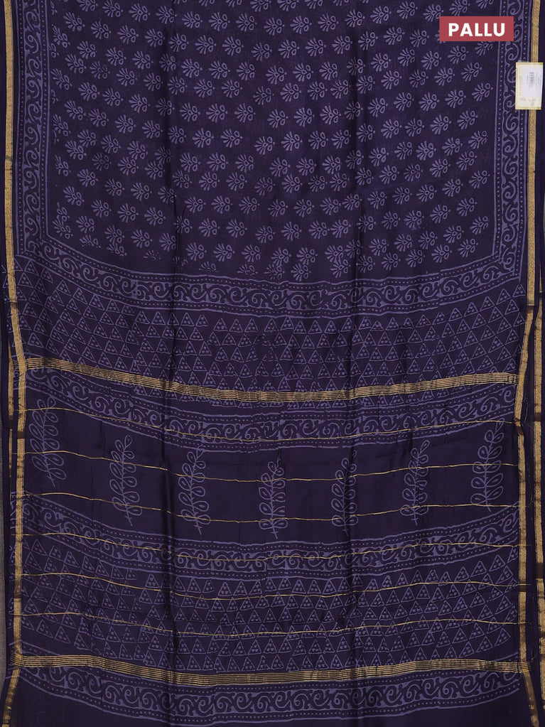 Chanderi bagru saree purple with allover prints and mageshwari border