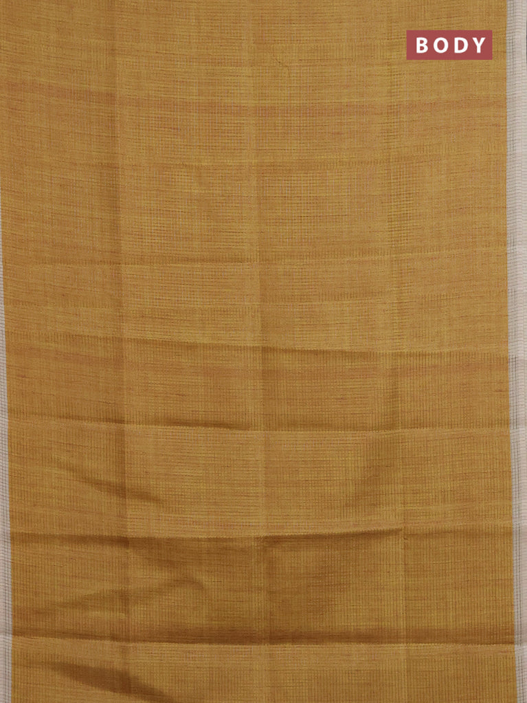 Chappa saree mustard yellow and beige with allover small zari checked pattern and elephant butta prints
