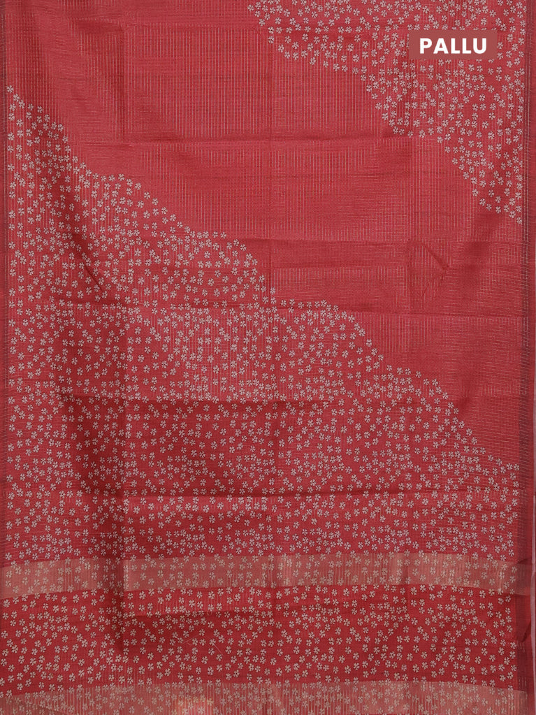 Chappa saree maroon with allover small zari checked pattern and floral digital printed pallu