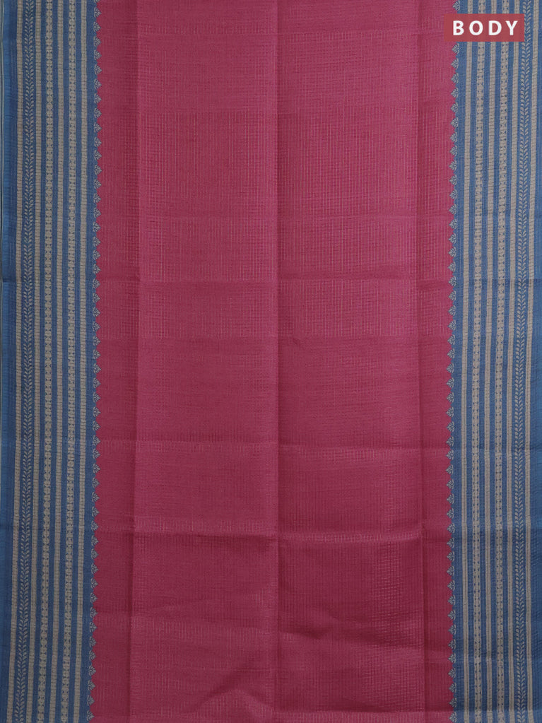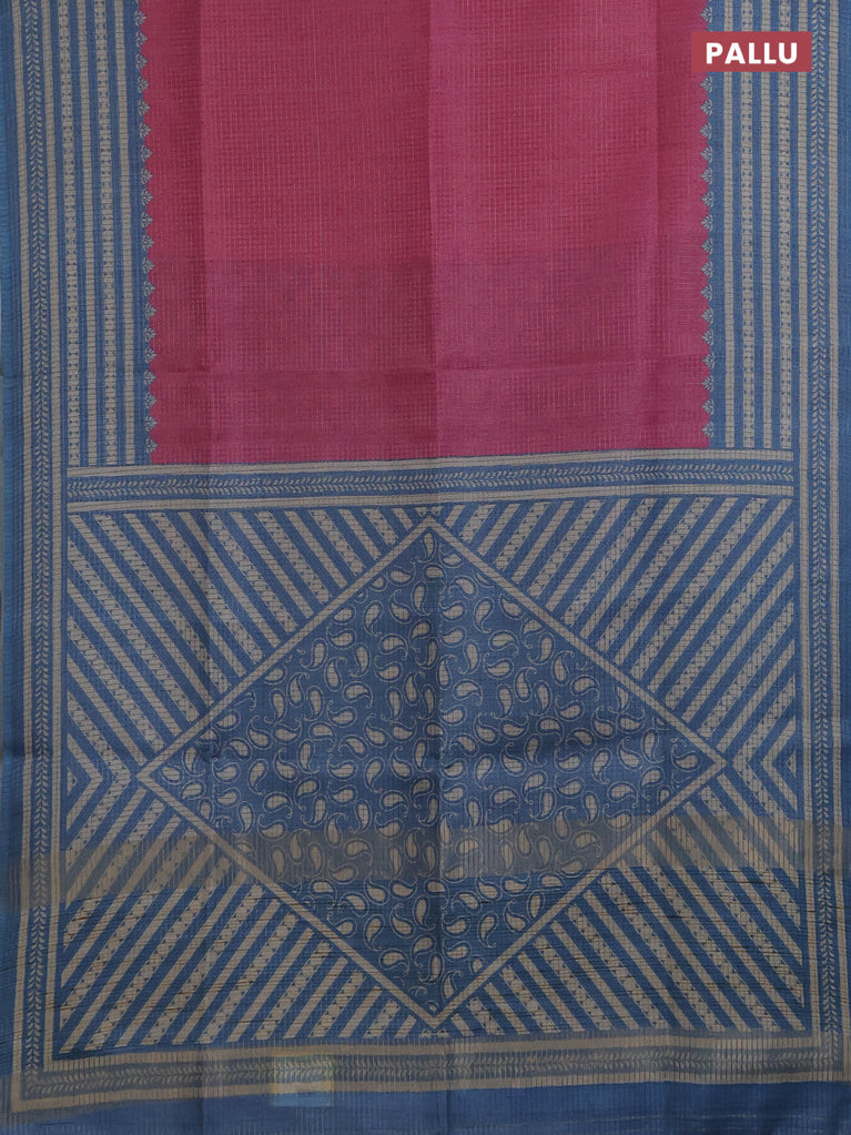 Chappa saree pink and cs blue with allover small zari checked pattern and printed border