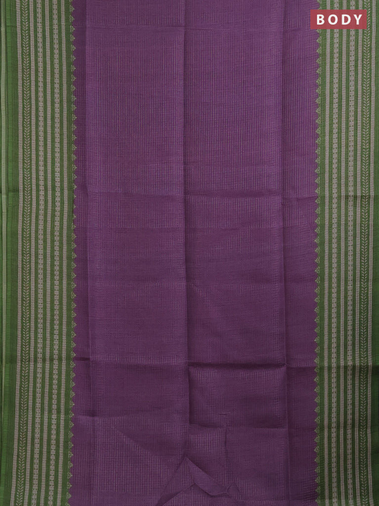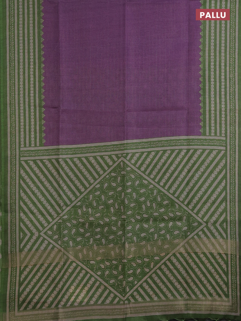 Chappa saree purple and green with allover small zari checked pattern and printed border