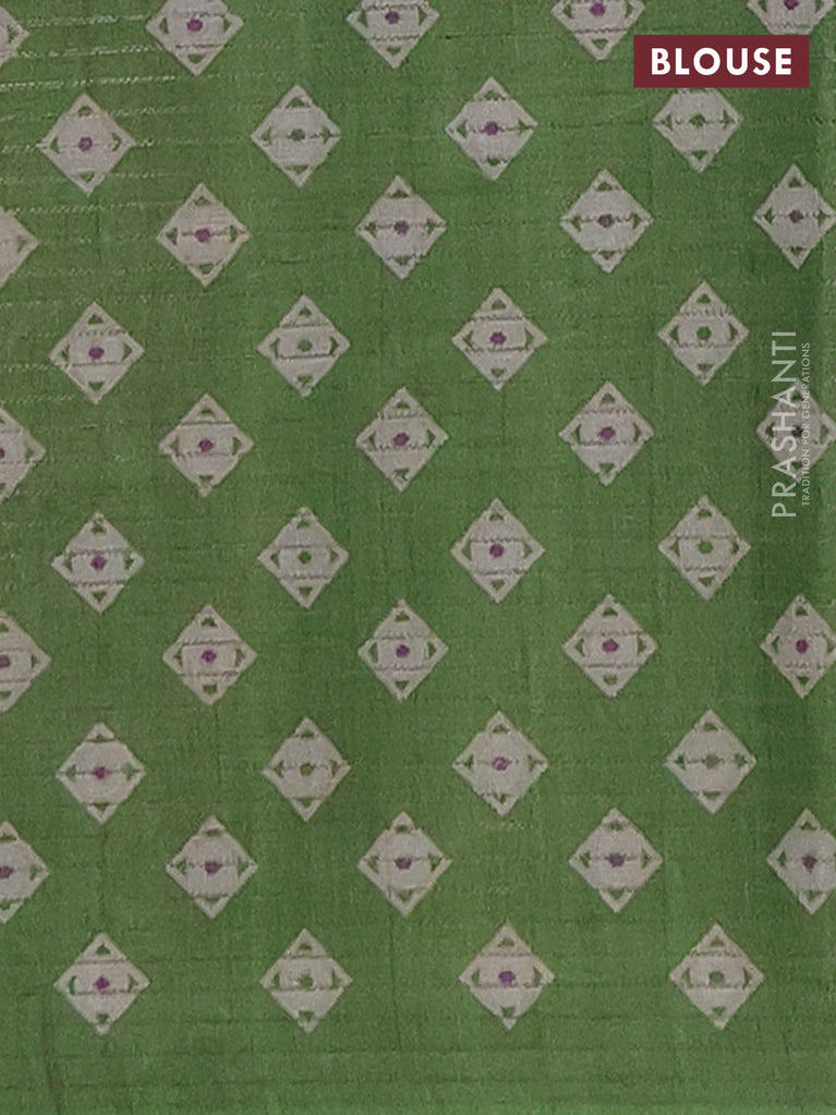 Chappa saree sap green and beige with allover small zari checked pattern and floral digital printed pallu