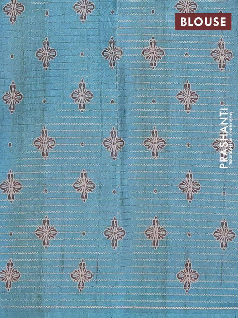 Chappa saree pastel grey and teal green with allover small zari checked pattern and floral digital printed pallu