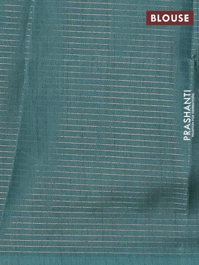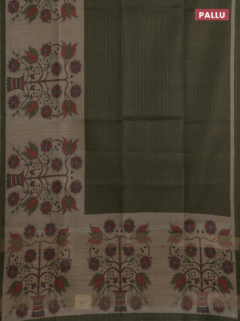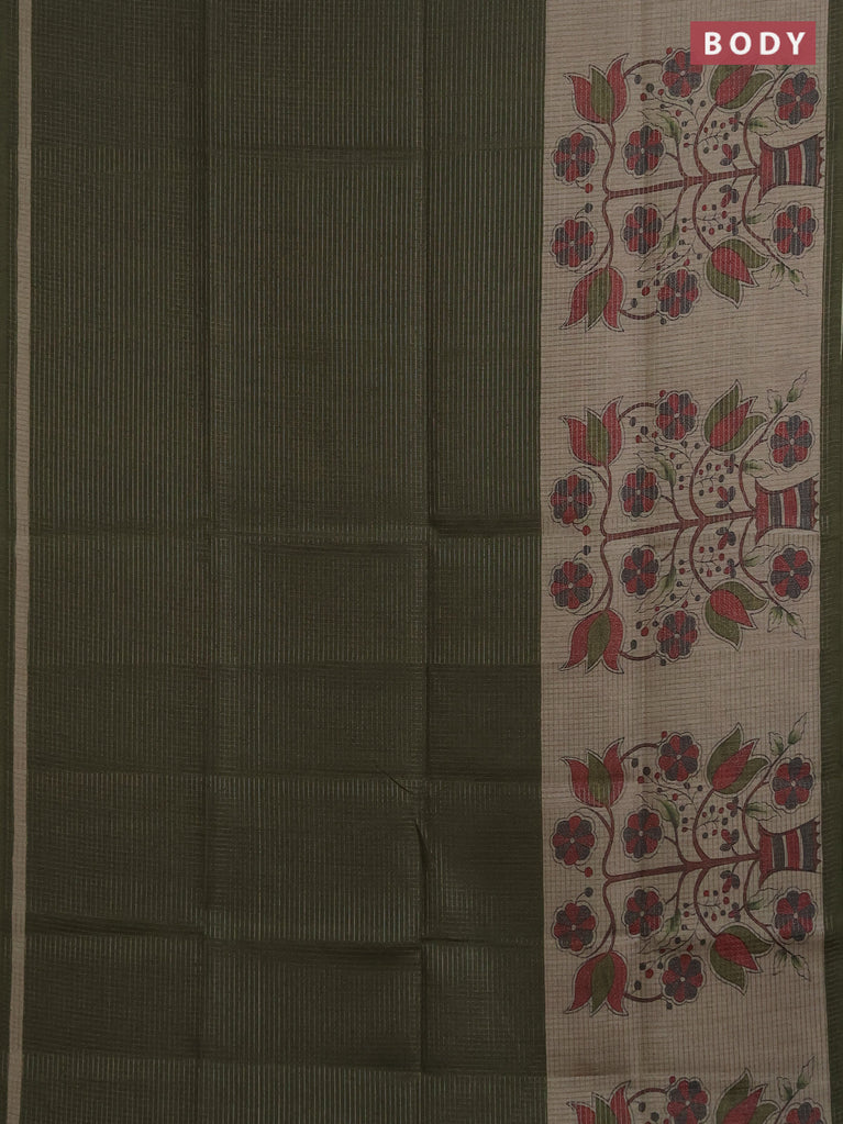 Chappa saree peacock green and beige with allover small zari checked pattern and floral digital printed pallu