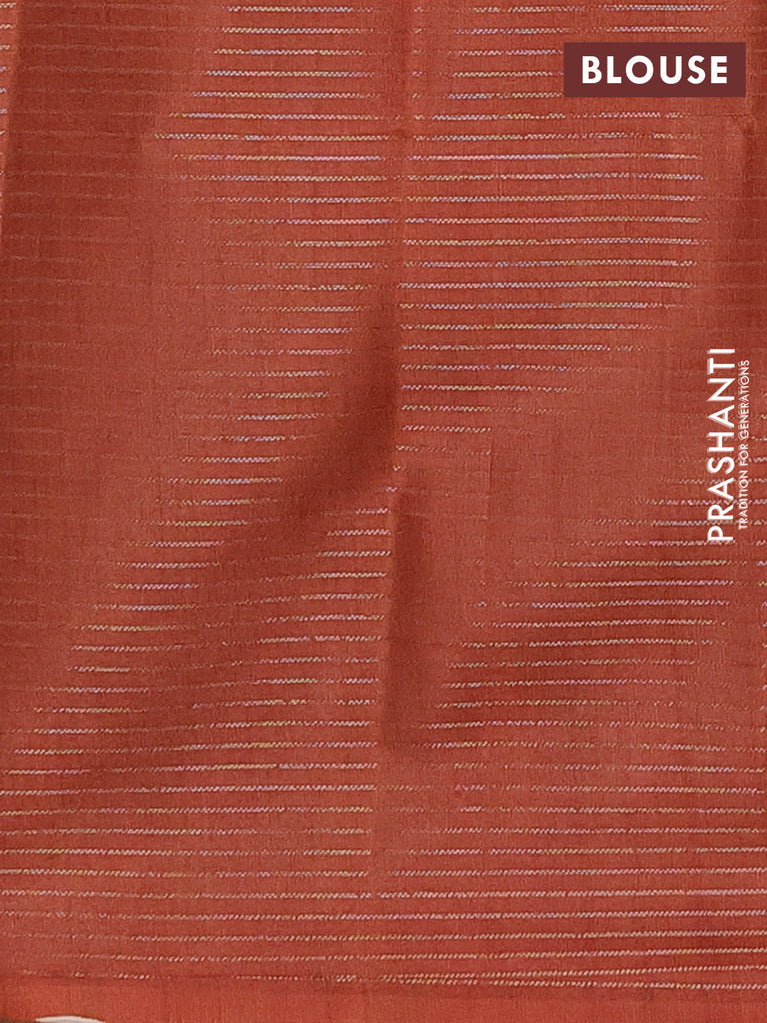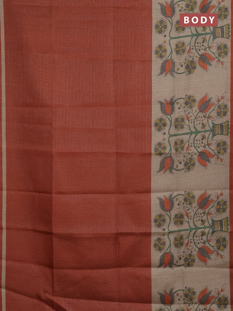 Chappa saree rustic orange and beige with allover small zari checked pattern and floral digital printed pallu