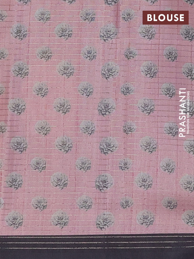 Chappa saree peach pink and black with allover small zari checked pattern & floral digital prints and ganga jamuna border