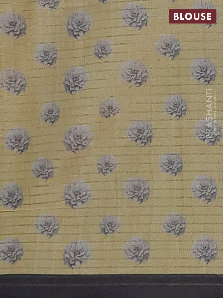 Chappa saree sandal and black with allover small zari checked pattern & floral digital prints and ganga jamuna border