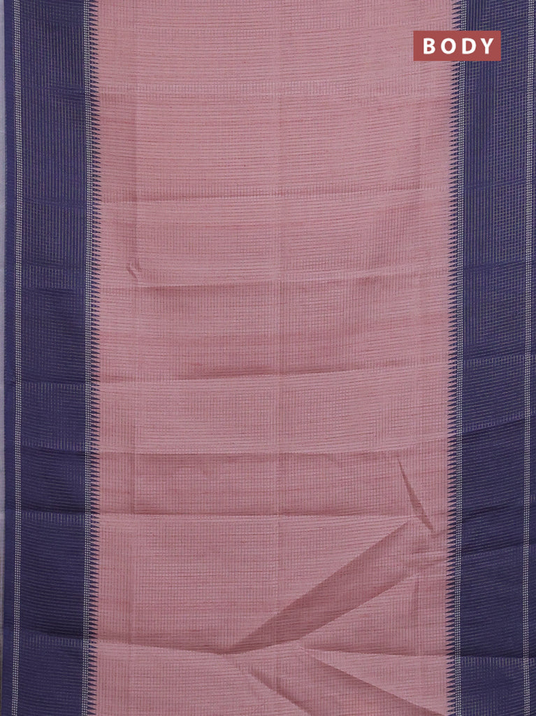 Chappa saree pastel pink and dark blue with allover small zari checked pattern and temple design zari woven border
