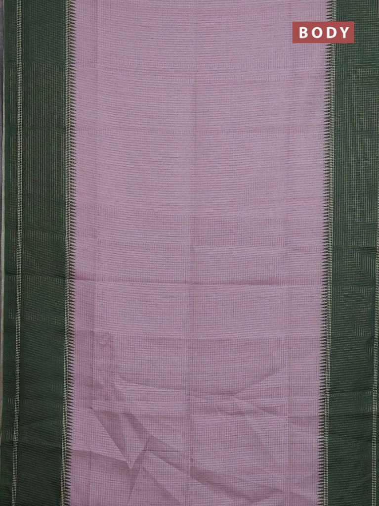Chappa saree pastel lavender and dark green with allover small zari checked pattern and temple design zari woven border