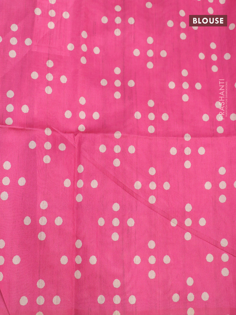 Chappa saree pink and beige with plain body and madhubani printed border