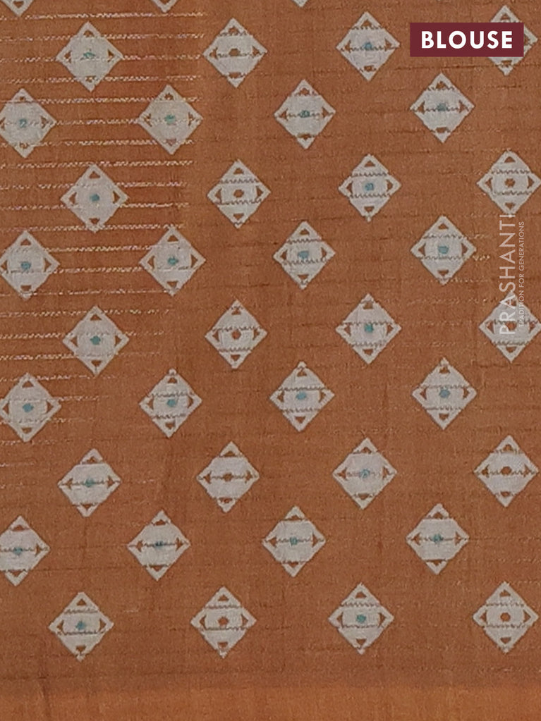Chappa saree rustic orange and beige with allover small zari checked pattern and floral digital printed pallu