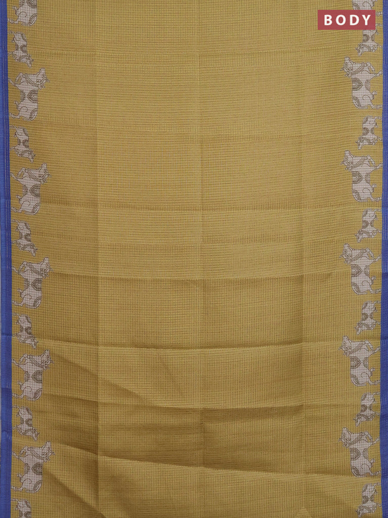 Chappa saree yellow and beige with allover small zari checked pattern and madhubani printed pallu