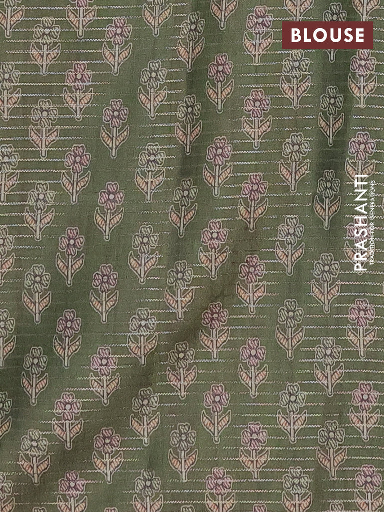Chappa saree sap green and beige with allover small zari checked pattern and floral digital printed pallu