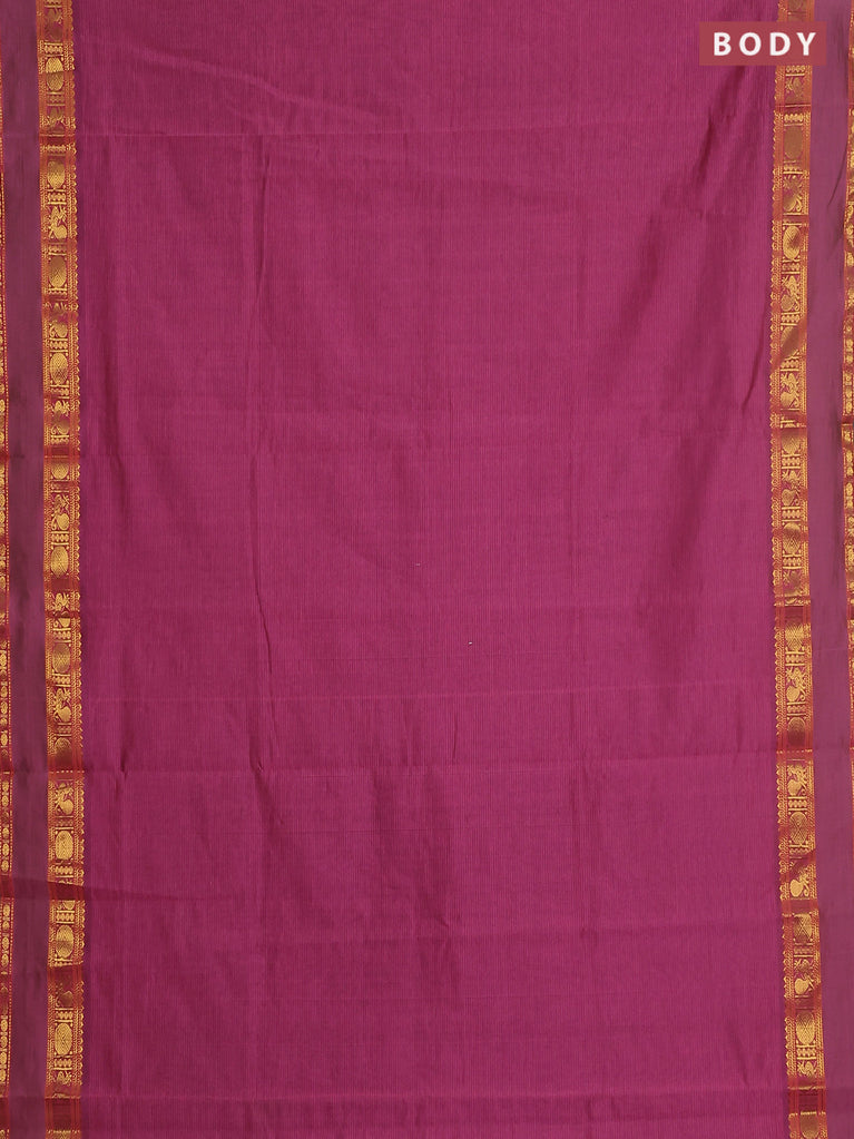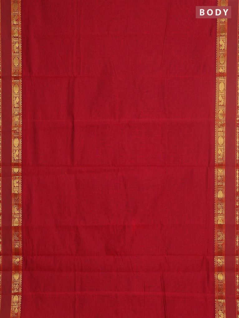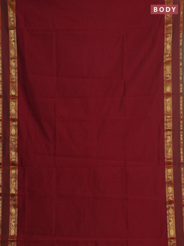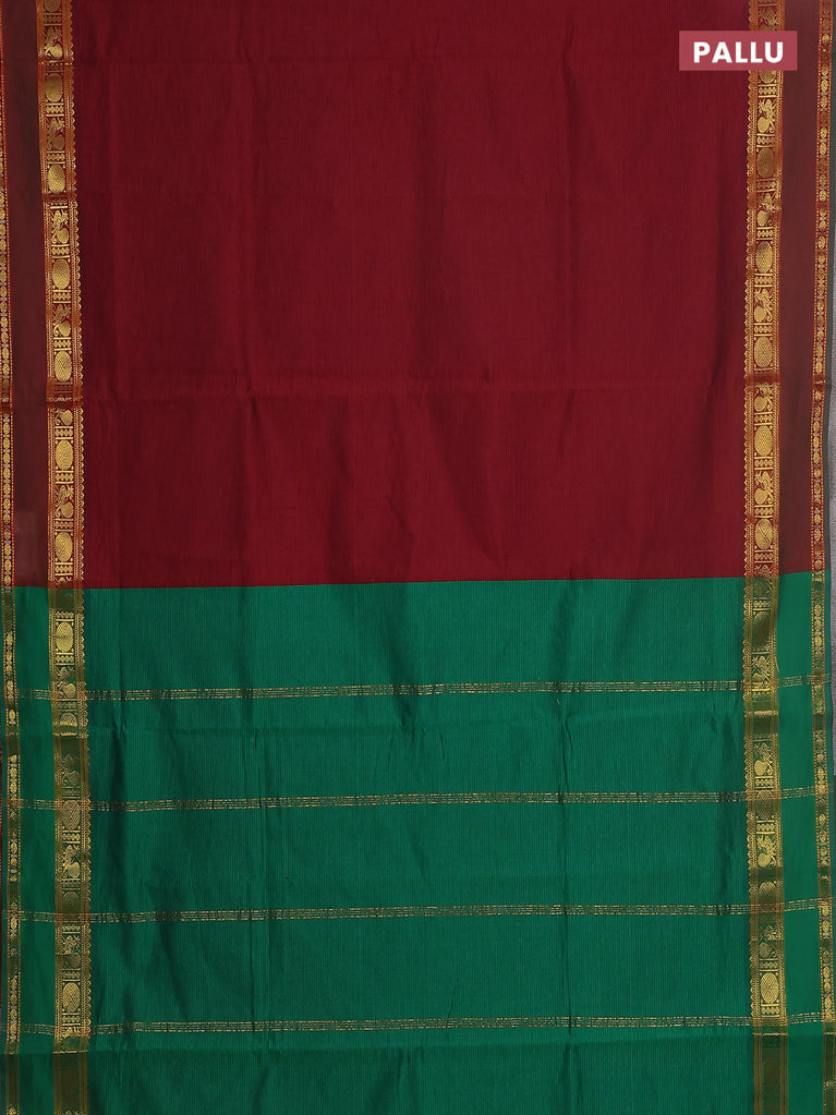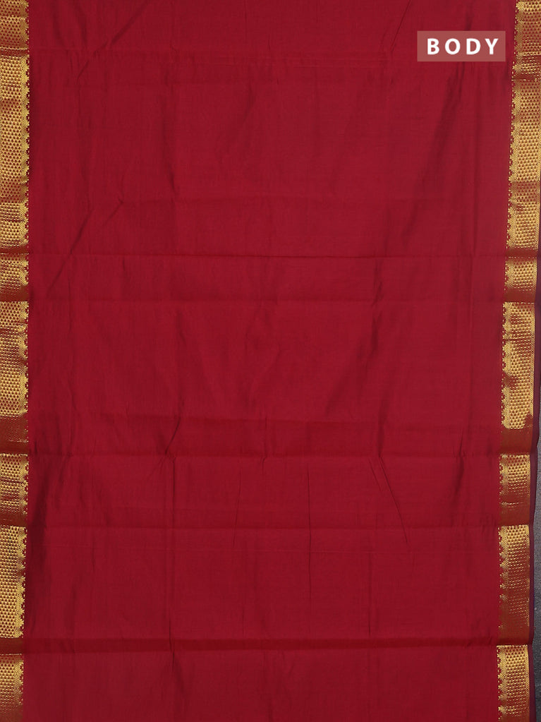 10 yards Poly cotton saree maroon and green with plain body and rettapet zari woven border