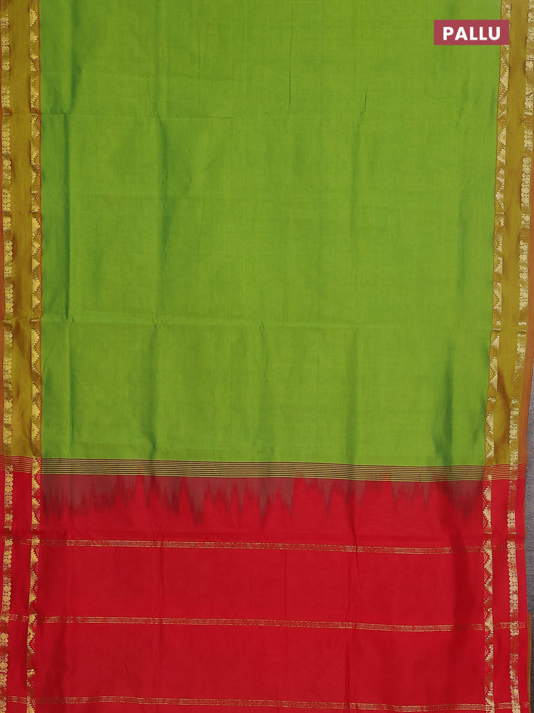 10 yards Poly cotton saree light green and red with plain body and rettapet zari woven border