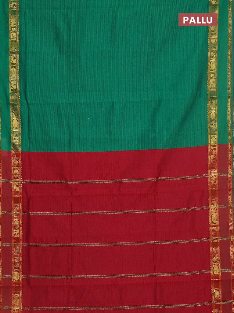 10 yards Poly cotton saree green and maroon with plain body and rettapet zari woven border
