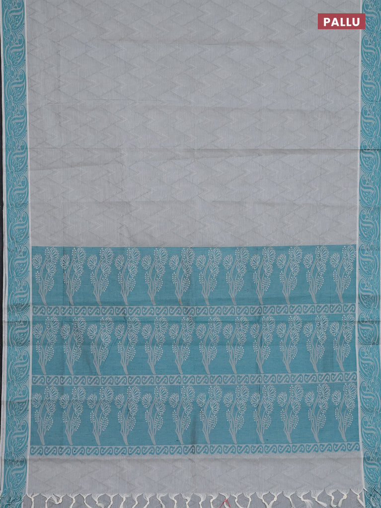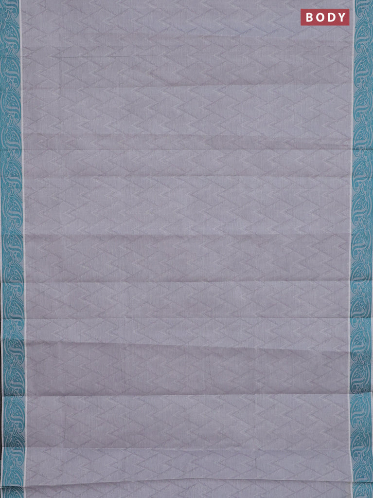Coimbatore cotton saree grey and teal green with allover self emboss and thread woven border