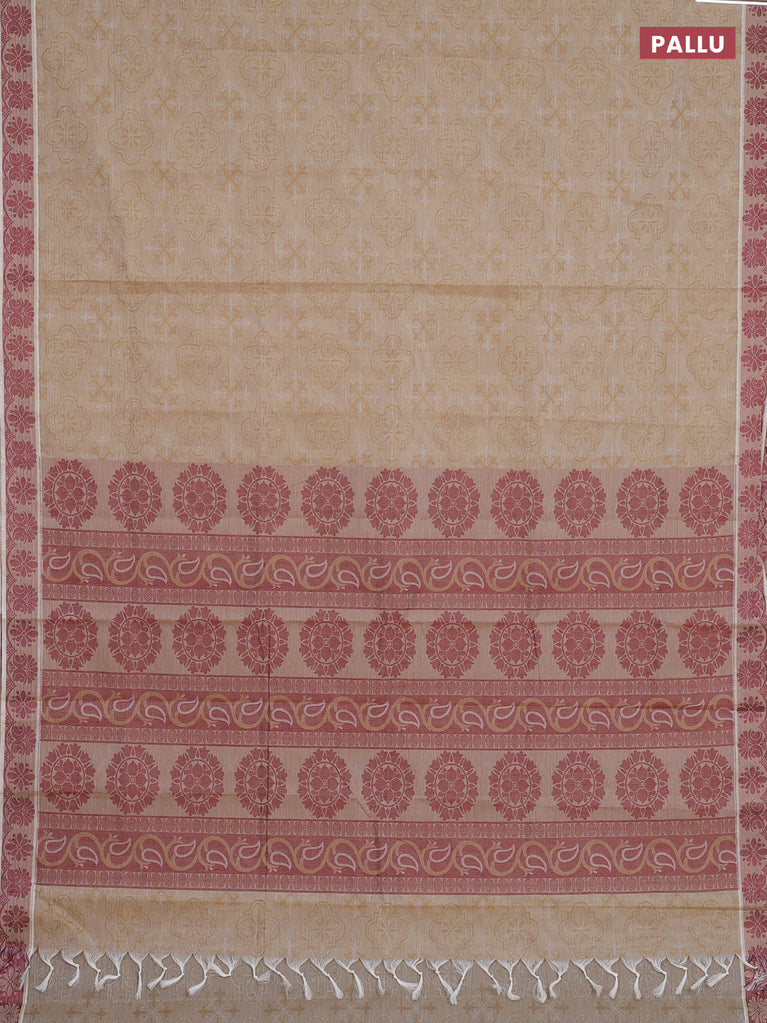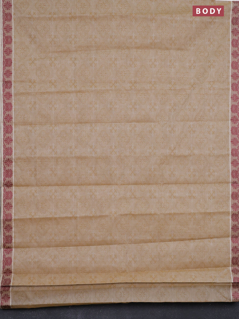Coimbatore cotton saree khaki shade and maroon with allover self emboss and thread woven border