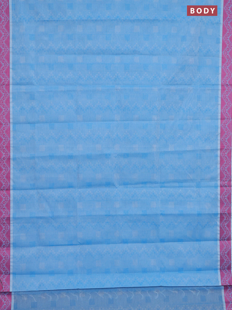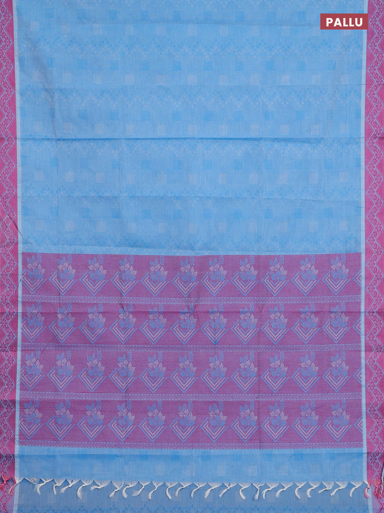 Coimbatore cotton saree light green and teal blue with allover self emboss and thread woven border
