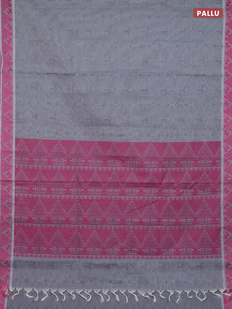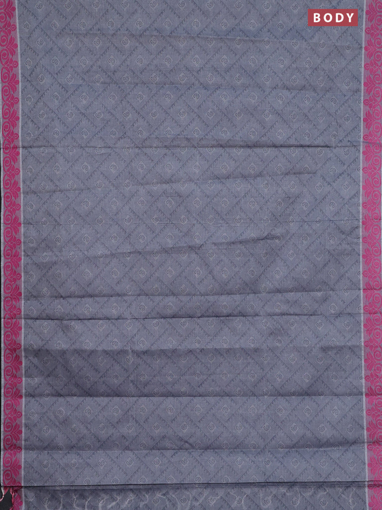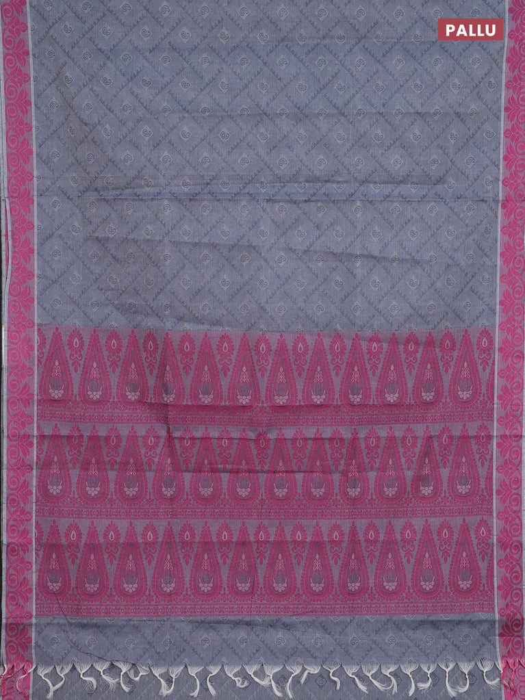 Coimbatore cotton saree grey and pink with allover self emboss and thread woven border