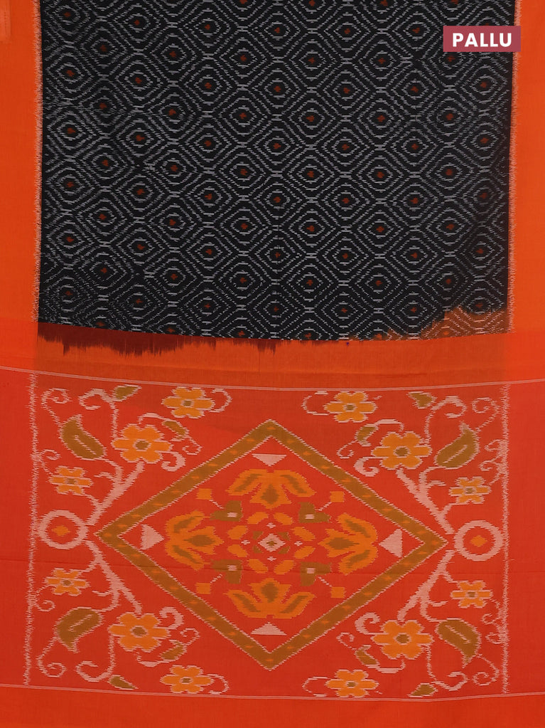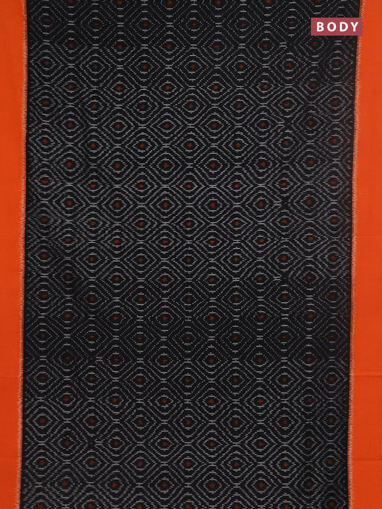 Ikat cotton saree black and orange with allover ikat weaves and simple border
