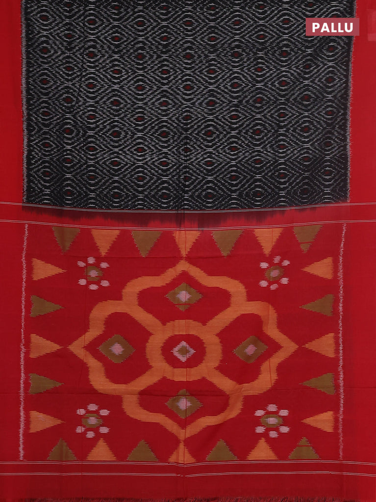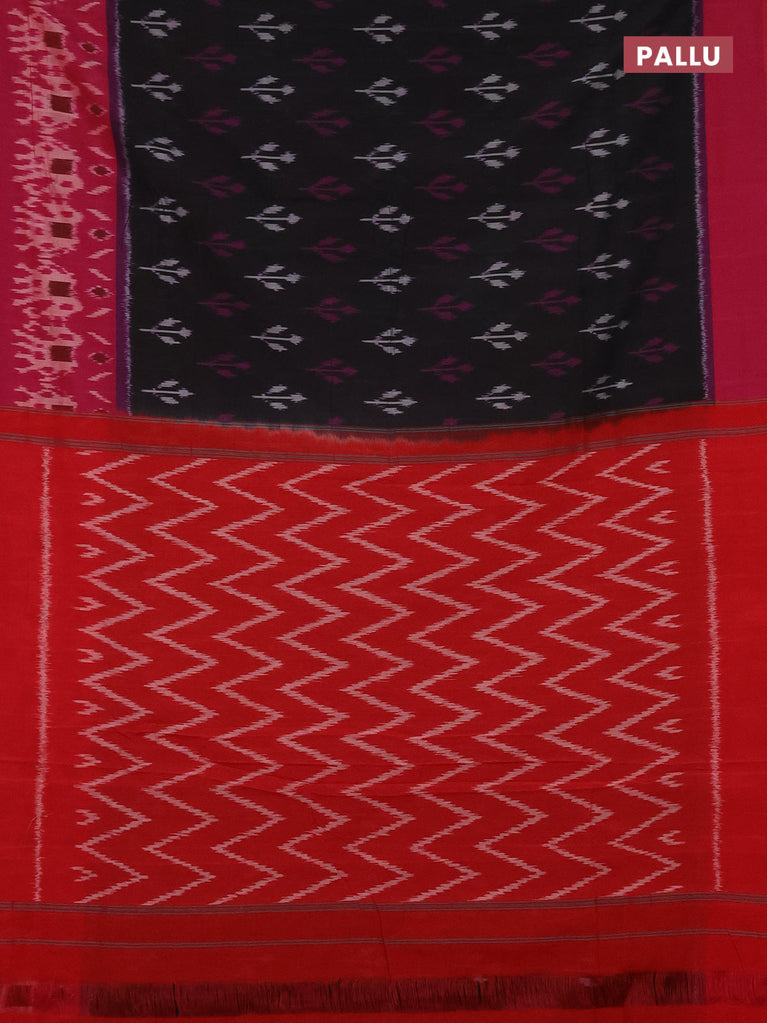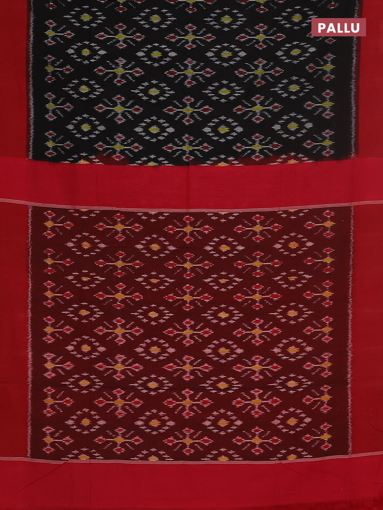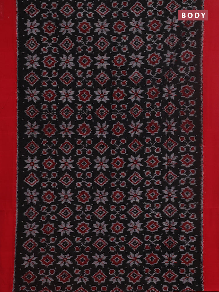 Ikat cotton saree black and red with allover ikat butta weaves and ikat style border