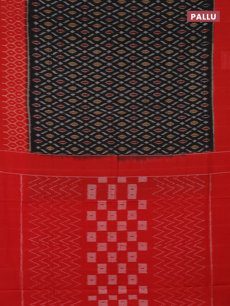 Ikat cotton saree black and red with allover ikat weaves and simple border