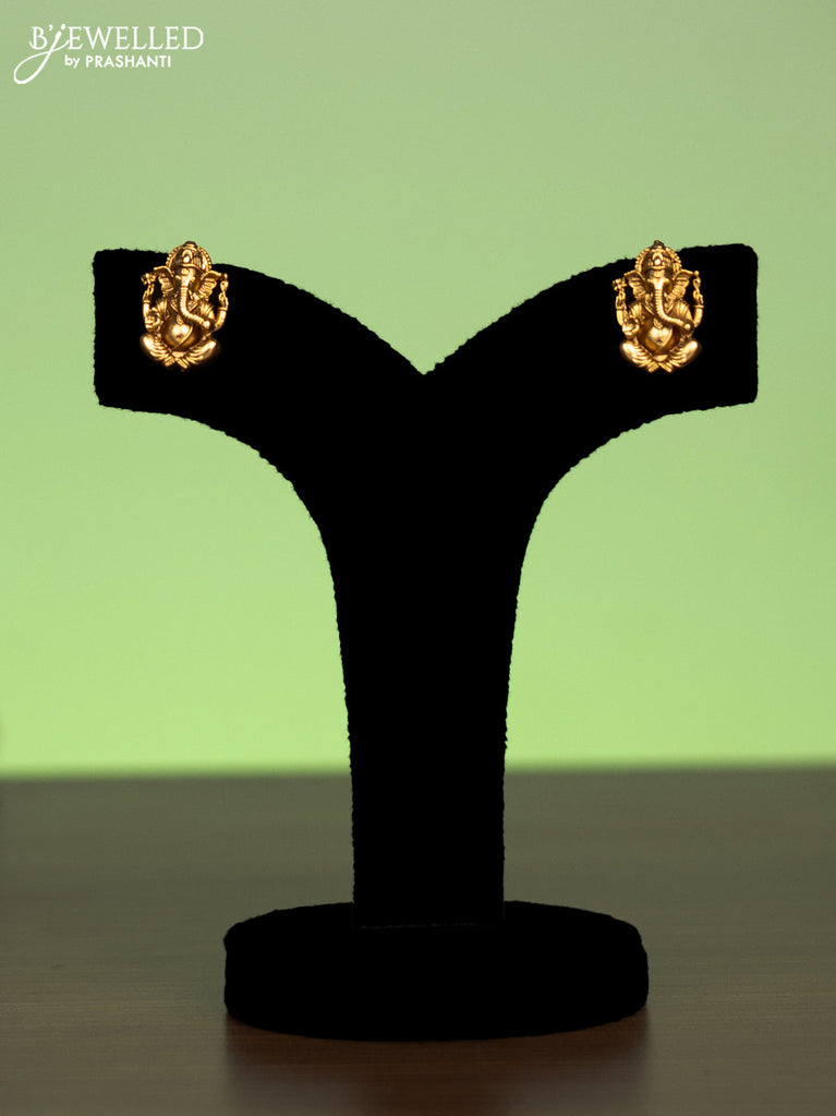 Antique choker lakshmi design with cz stones and pearl & golden beads hanging