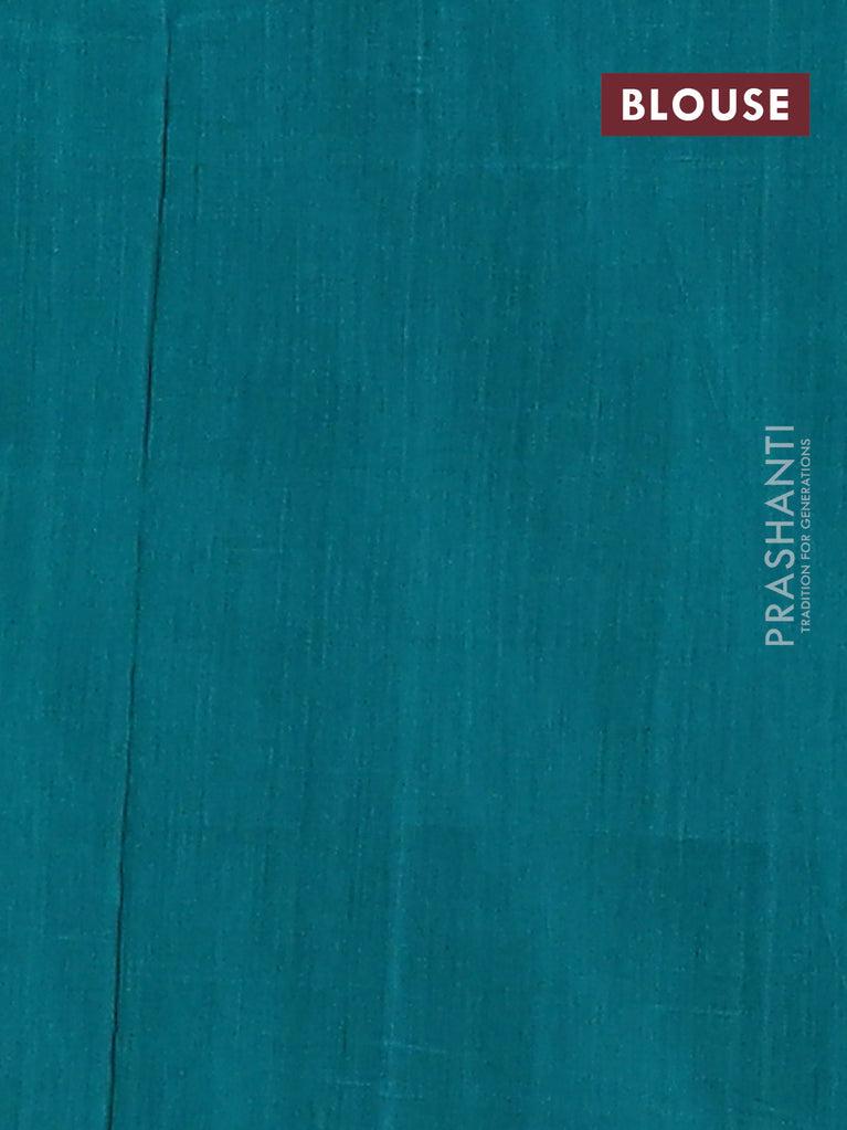 Ikat cotton saree teal green and broon with allover ikat butta weaves and simple border