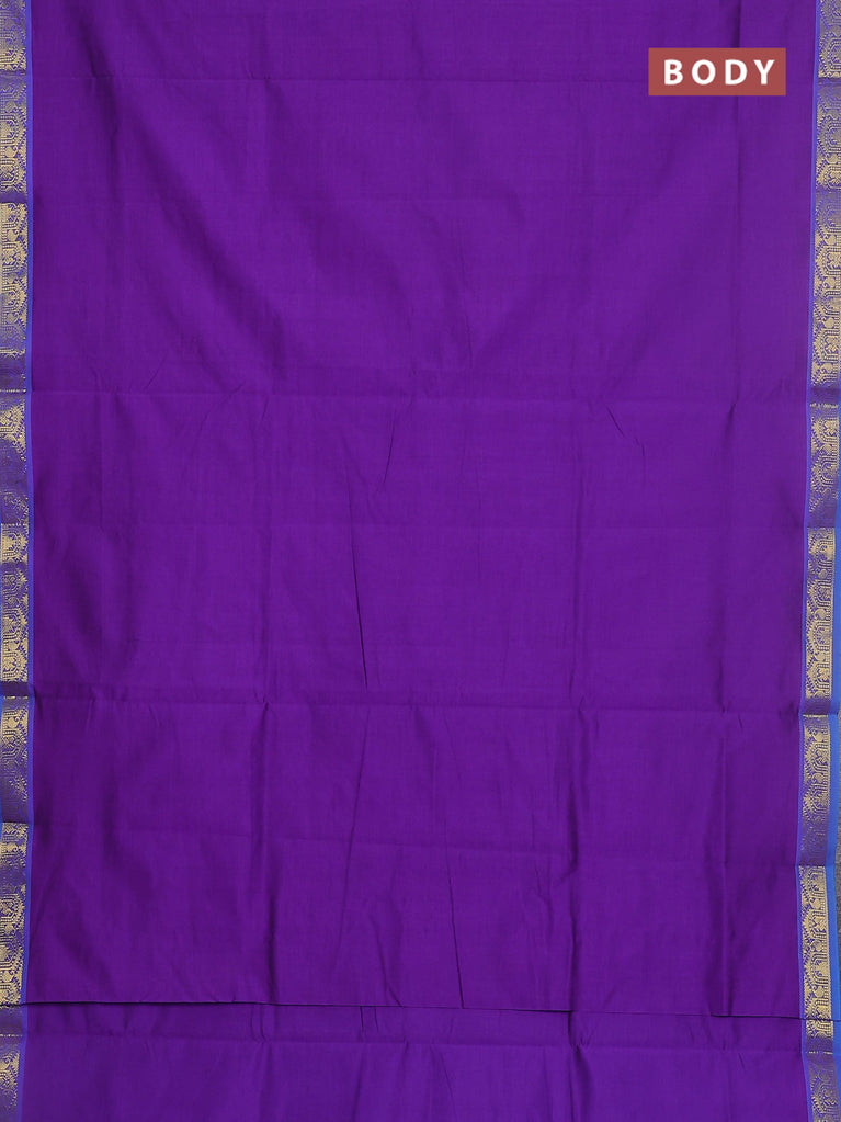 10 yards Poly cotton saree purple and blue with plain body and zari woven border