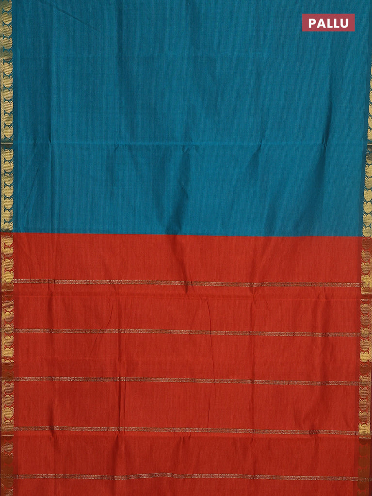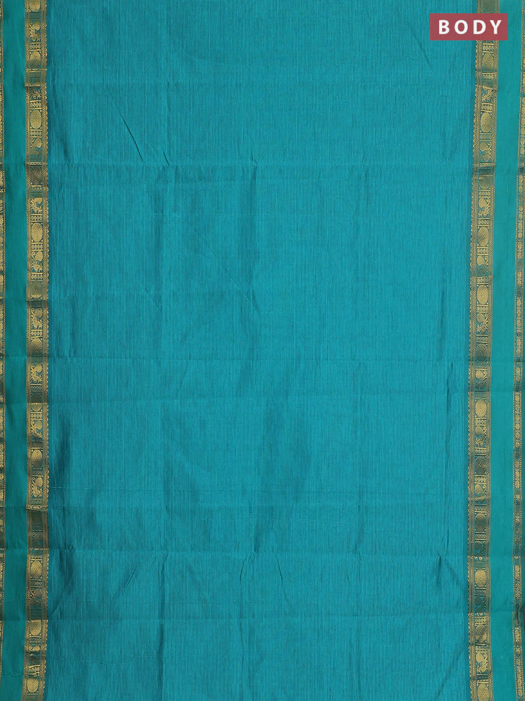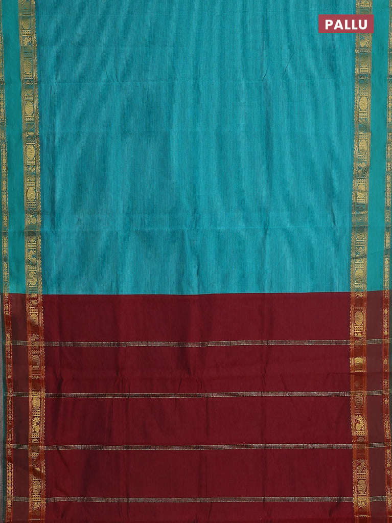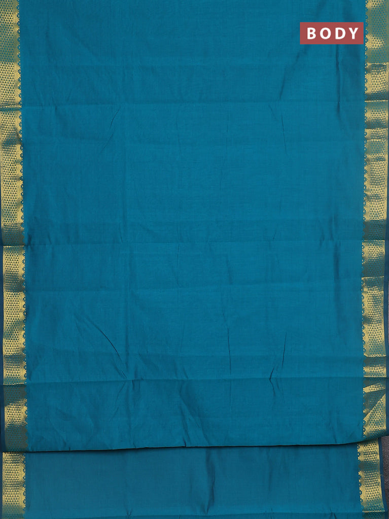 10 yards Poly cotton saree teal green and maroon with plain body and rettapet zari woven border