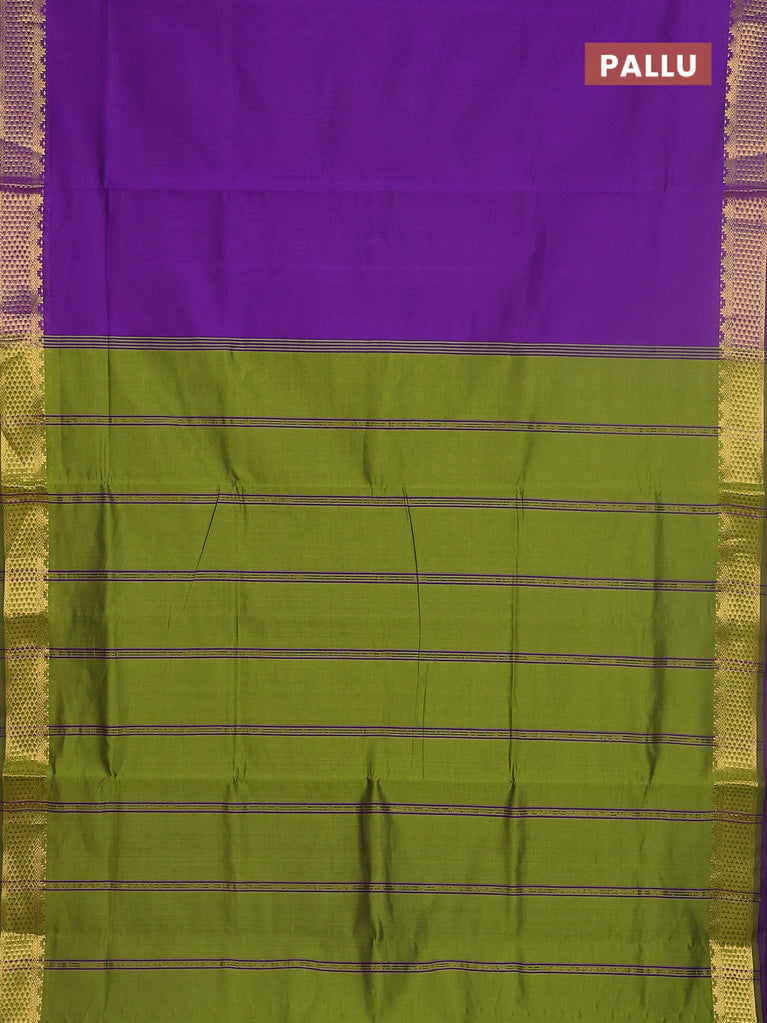 10 yards Poly cotton saree purple and light green with plain body and rettapet zari woven border