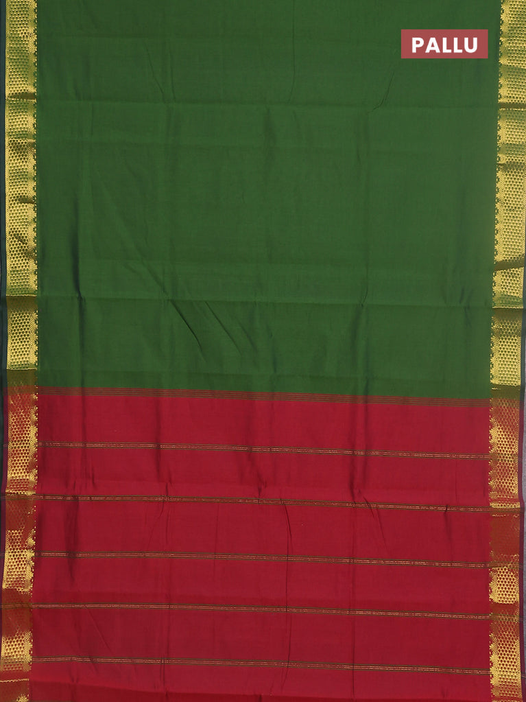 10 yards Poly cotton saree sap green and maroon with plain body and zari woven border