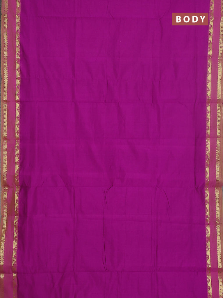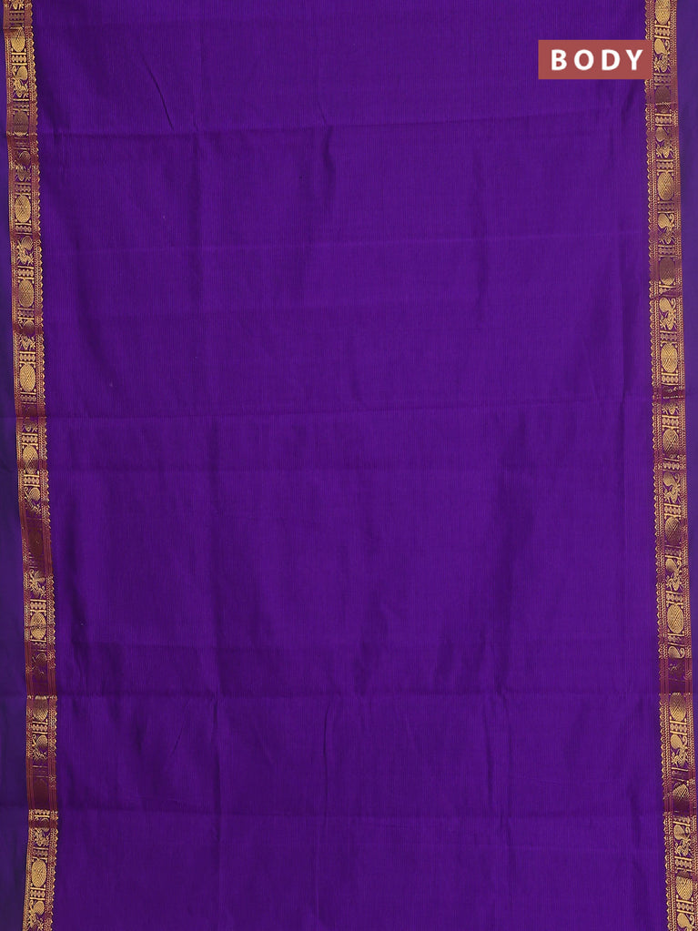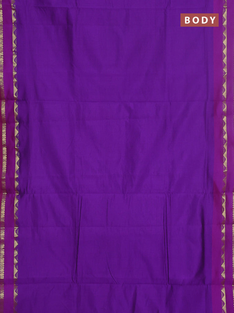 10 yards Poly cotton saree violet and maroon with plain body and rettapet zari woven border