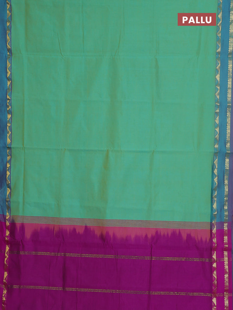 10 yards Poly cotton saree teal green and purple with plain body and rettapet zari woven border