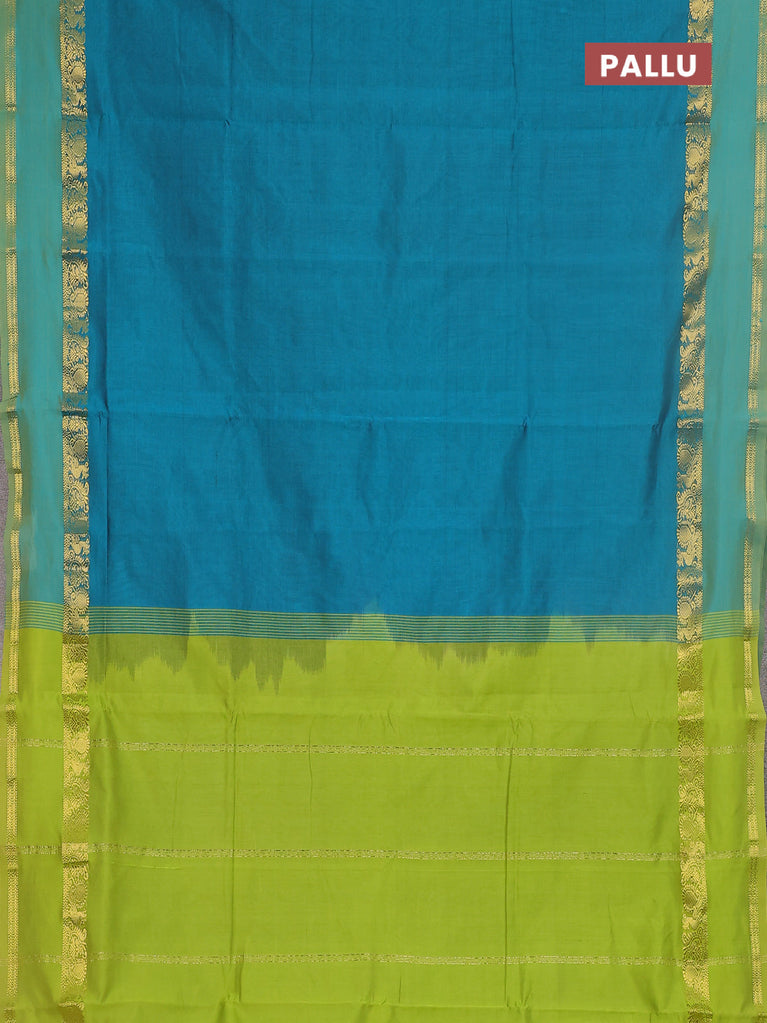 10 yards Poly cotton saree peacock green and lime green with plain body and rettapet zari woven border
