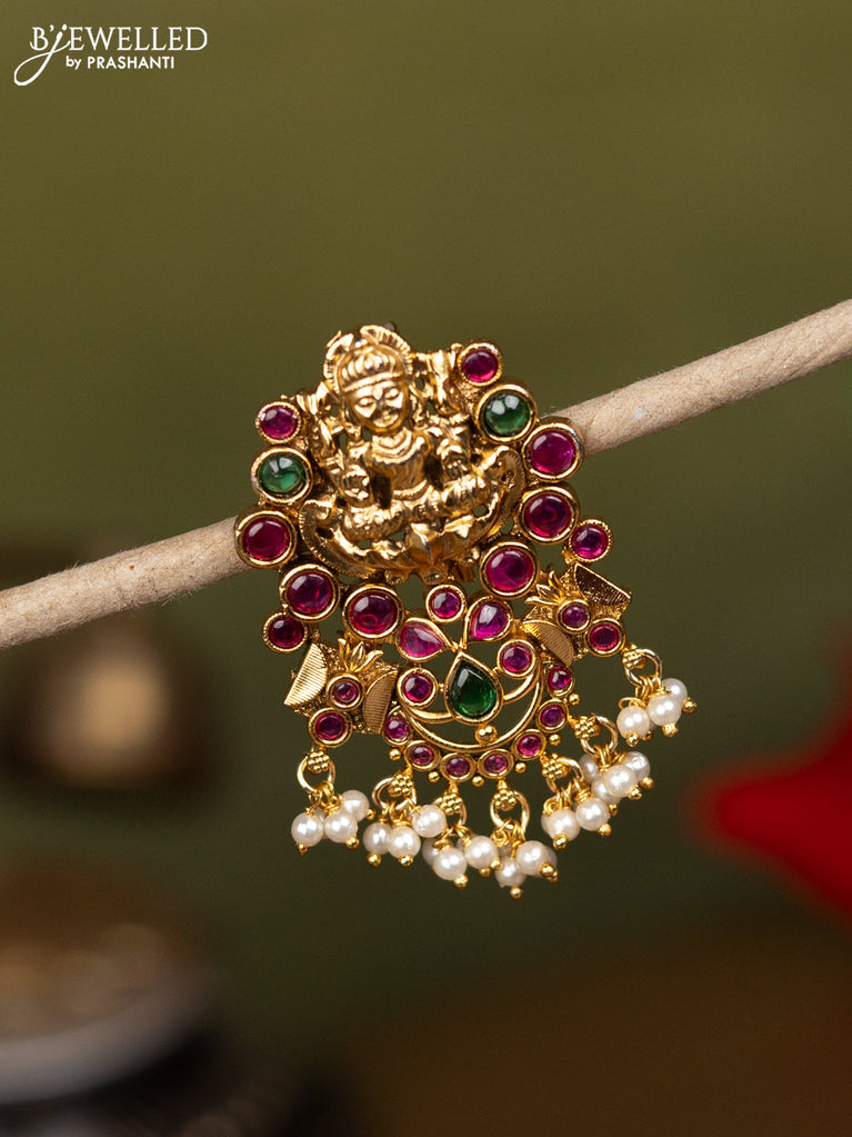 Antique jada billai lakshmi design with pink kemp stones and golden beads hanging