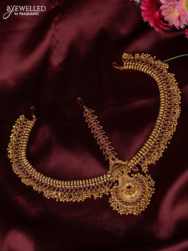 Antique lakshmi necklace with cz and kemp stone