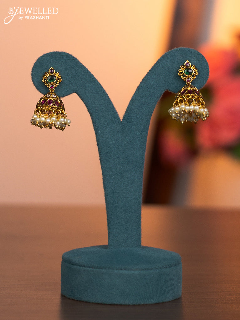 Antique necklace lakshmi design with kemp stones and pearl hangings without earring