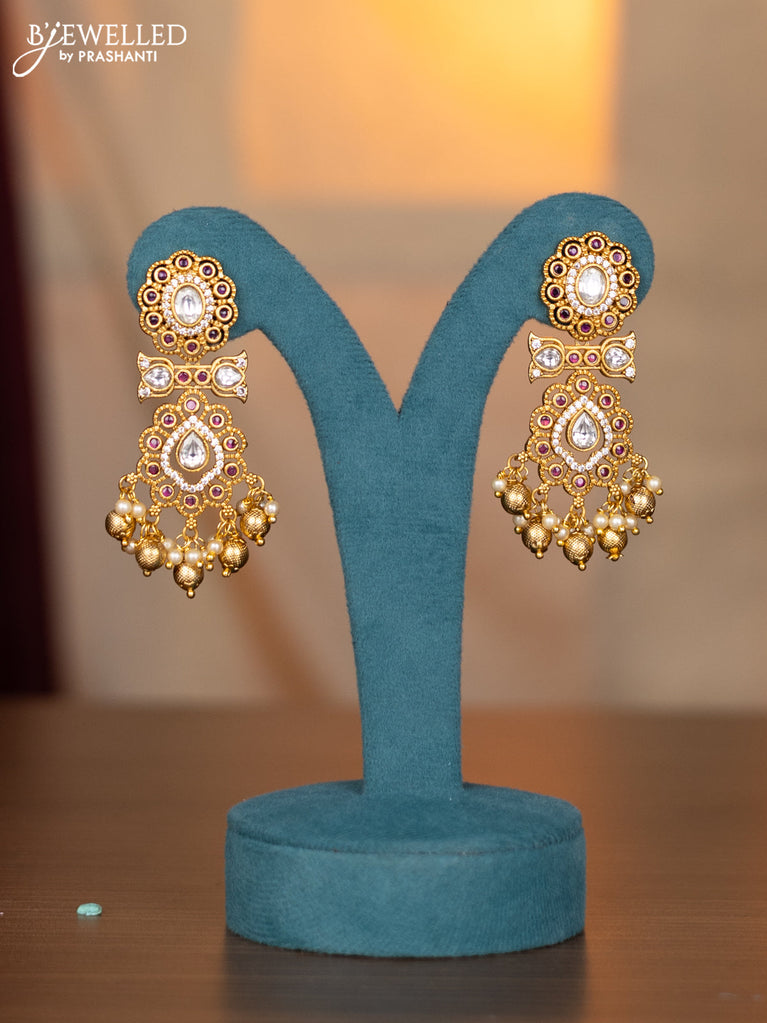 Antique pendant set chandbali design with kemp and cz stone and pearl hangings