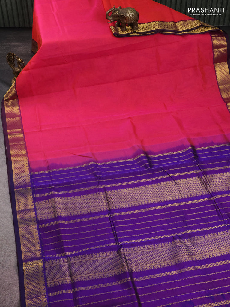 10 yards silk cotton saree dual shade of pinkish orange and purple with allover vairaosi pattern & zari buttas and zari woven border