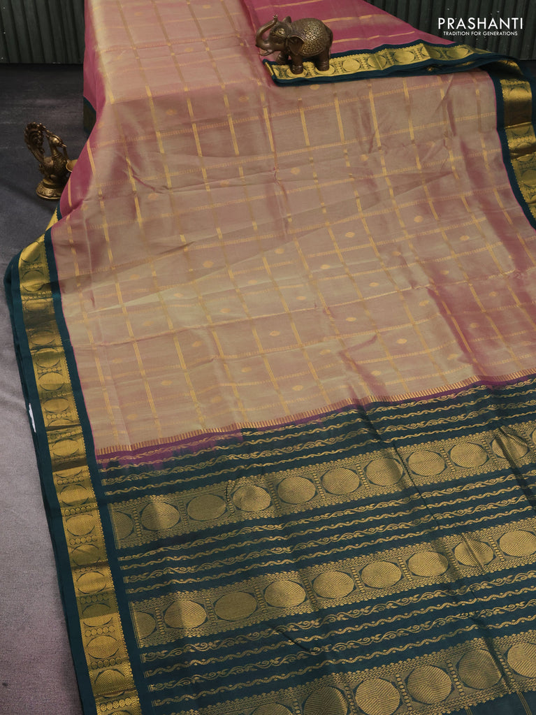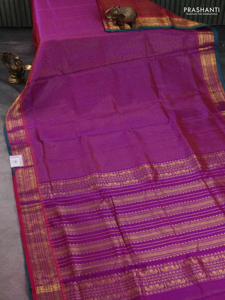 10 yards silk cotton saree dual shade of greenish violet and purple with allover zari checked pattern and zari woven border